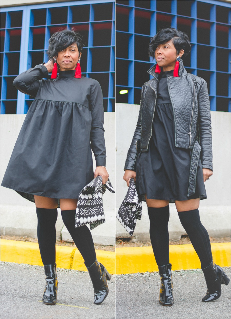 Once I saw the black one, I had to get it! This time I decided to wear it with OTK socks. I could have went with black tights, but i wanted to funk it up!